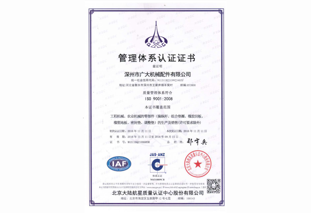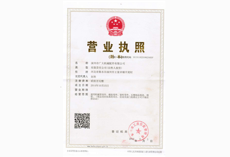 深州市廣大機械配件有限公司始建于2000年,是專業生產橡膠、塑料用品、沖壓件的民營企業。我公司地處古城深州,石德鐵路、京九鐵路、石黃高速、大廣高速在此交匯,交通十分便利,地理優勢優越。工廠占地面積3000平米,建筑面積1500平米,現有職工50名,專業技術人員5名,固定資產1200萬... 詳細>>